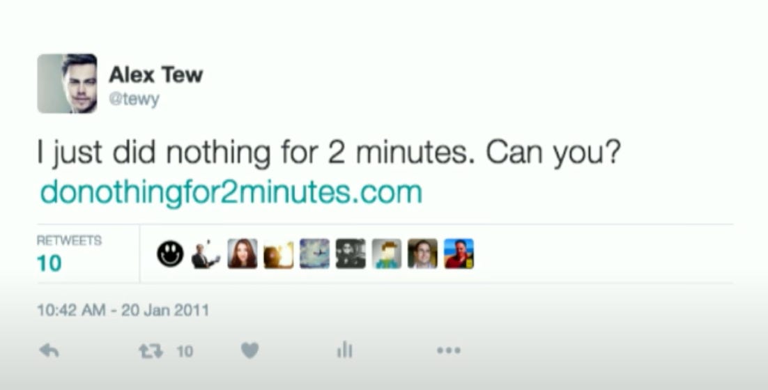 When Alex built http://www.donothingfor2minutes.com he did not have the social following he did today. Instead, he had a few tricks up his sleeve