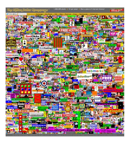 In University, Alex built this website with the goal of "becoming a millionaire in two weeks." The idea was to sell 1 million pixels for $1 each. In 4 months he sold every pixel on the website netting him $1,037,000. The million dollar homepage was built in 2 days.