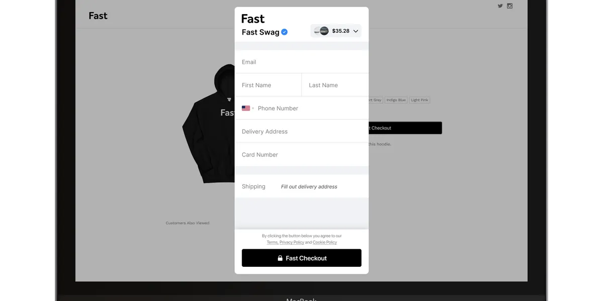 However, if they are a first-time Fast user, they are taken to a normal-looking Fast checkout flow where they enter their information to be later saved for future checkouts. You have to be a 2nd+ time user of Fast to experience the magic!