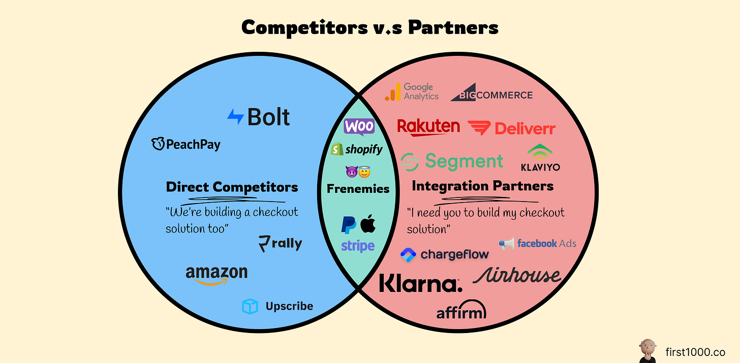 So not only does a checkout solution need 100s of integration partners to build a viable solution, but they also need to convince them to partner with them when they have or will very soon have their competing product.