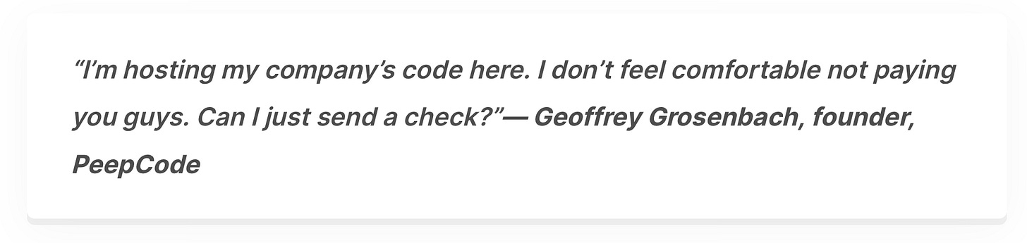 💳 They bootstrapped the company for 4 years and scaled it to over 3 million repos (aka projects) before raising any venture money.