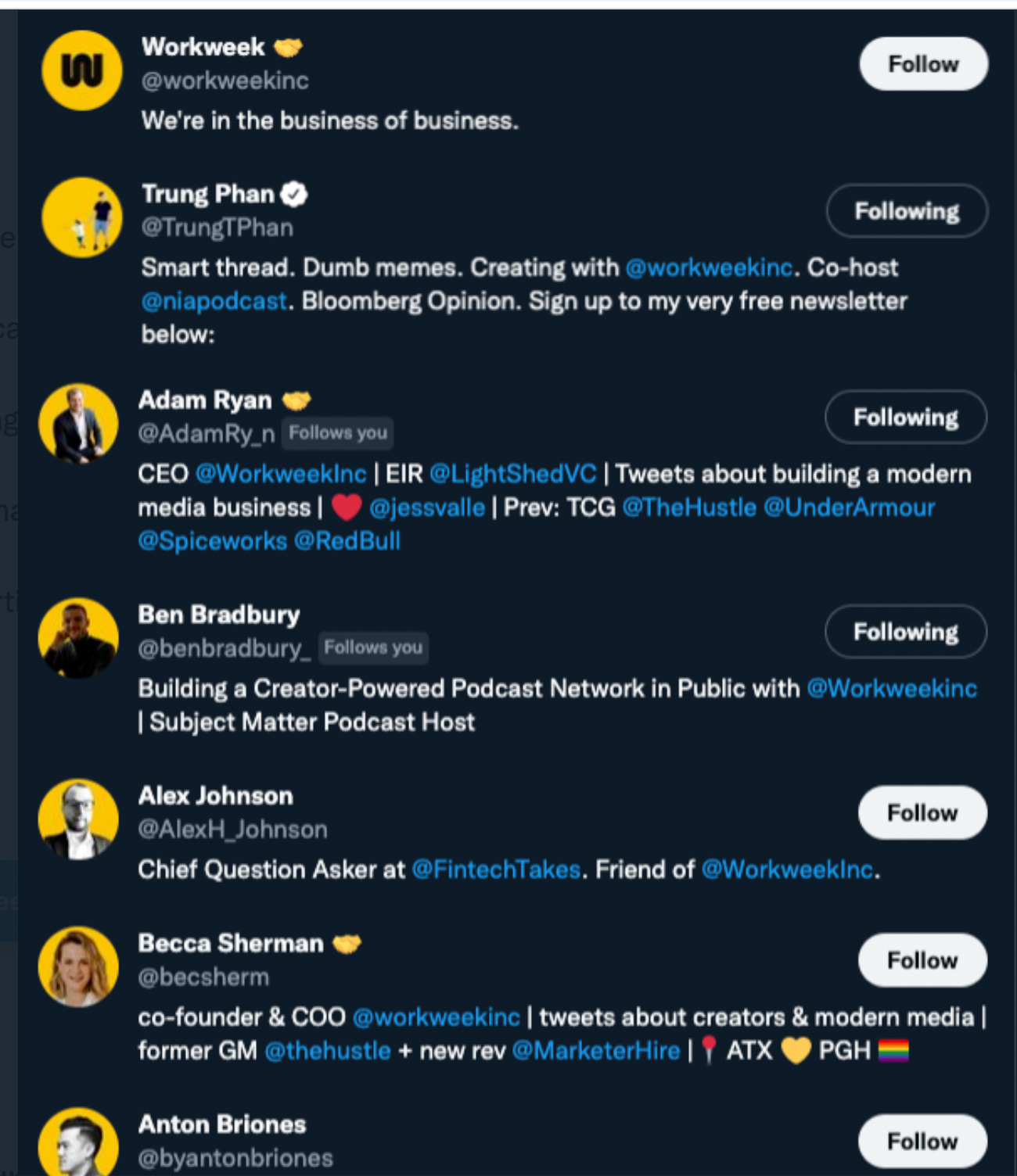 I love how Workweek (<1 year old) is killing it with their brand. They completely owned their yellow background on Twitter. h/t to @Jared for sharing this