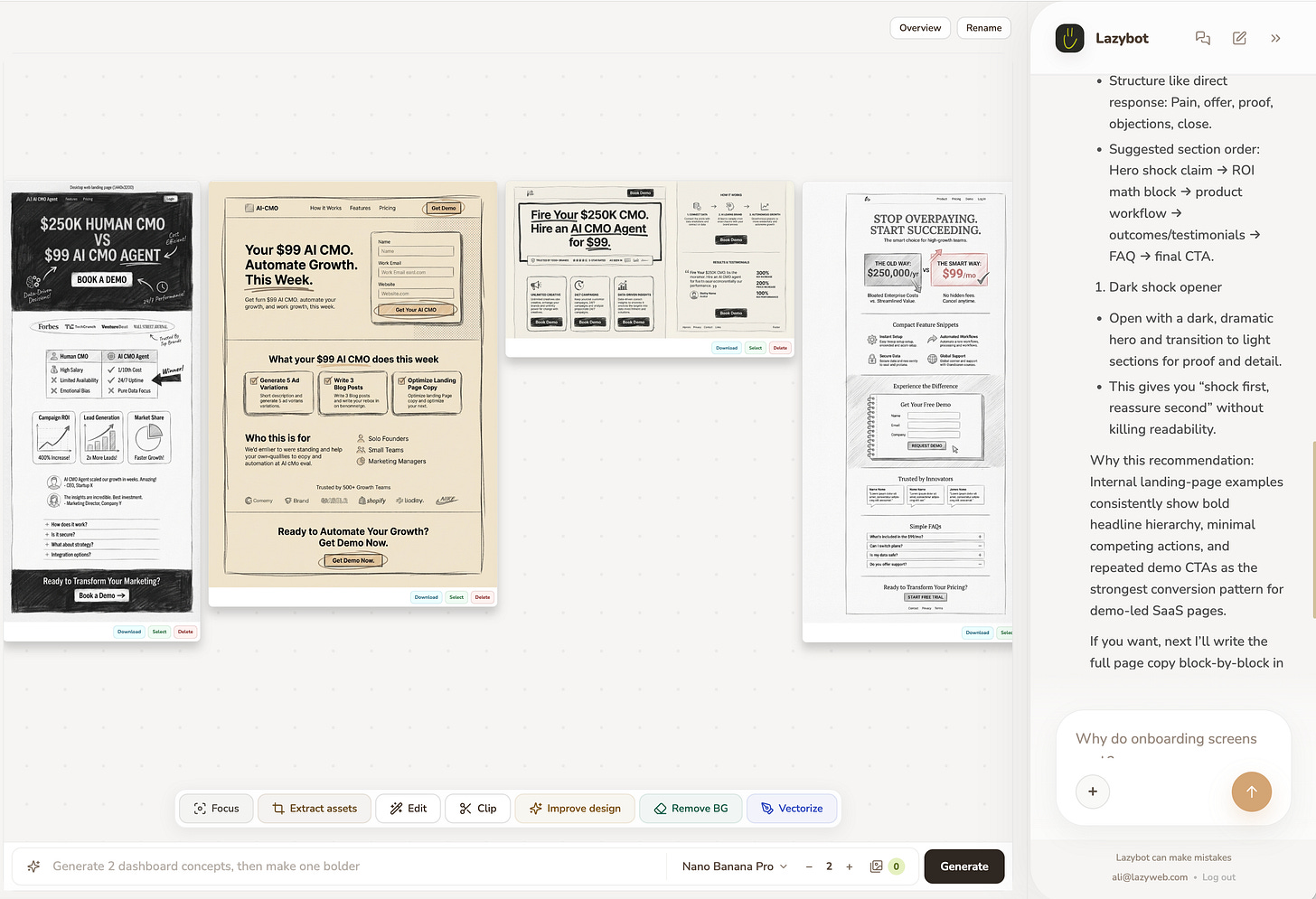 I wanted to move fast enough that I wouldn’t get emotionally attached to the first decent output and can leverage the thousands of A/B tests by the best in class companies to my advantage.