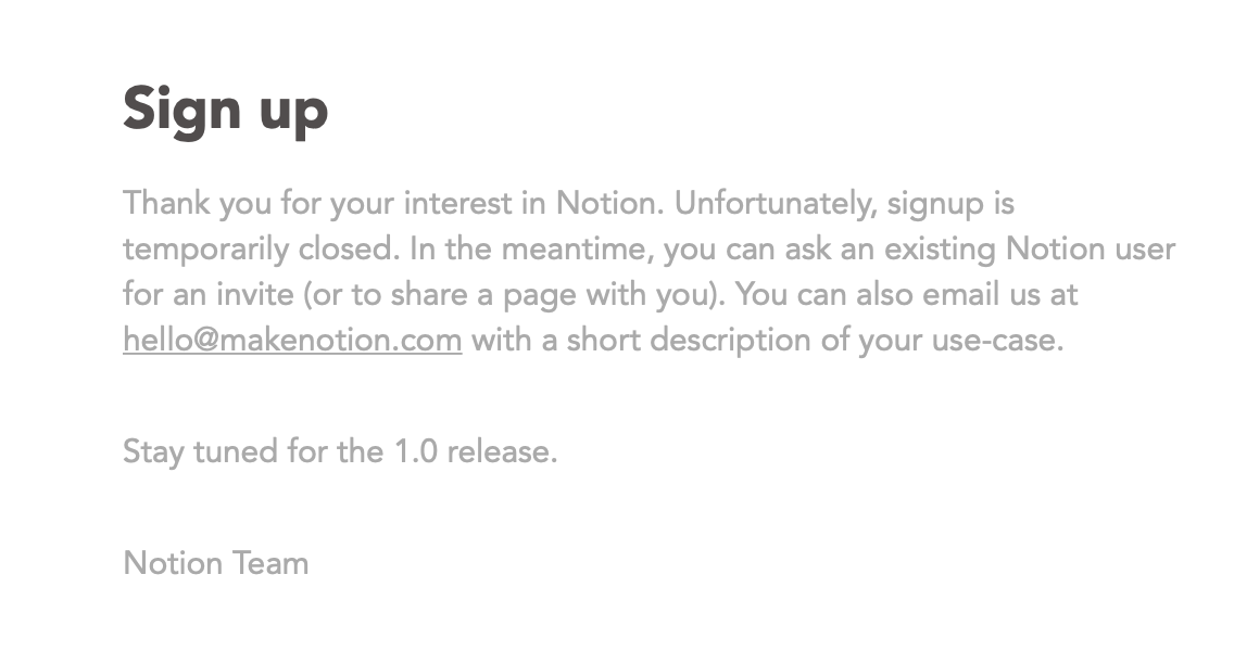 First was allowing collaborators to bypass the early-access form. If anyone wanted to an invite to Notion, the path of least resistance is to find someone already using it and collaborate on that workspace.