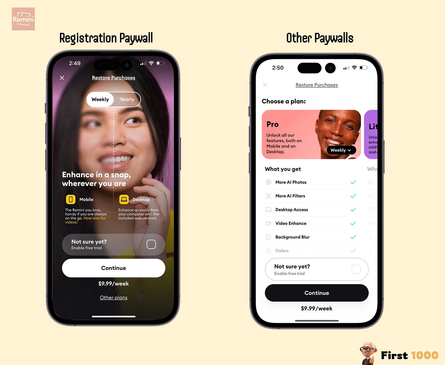 The one thing that stood out through this process was how different registration paywalls looked than other paywalls throughout the remainder of the app.