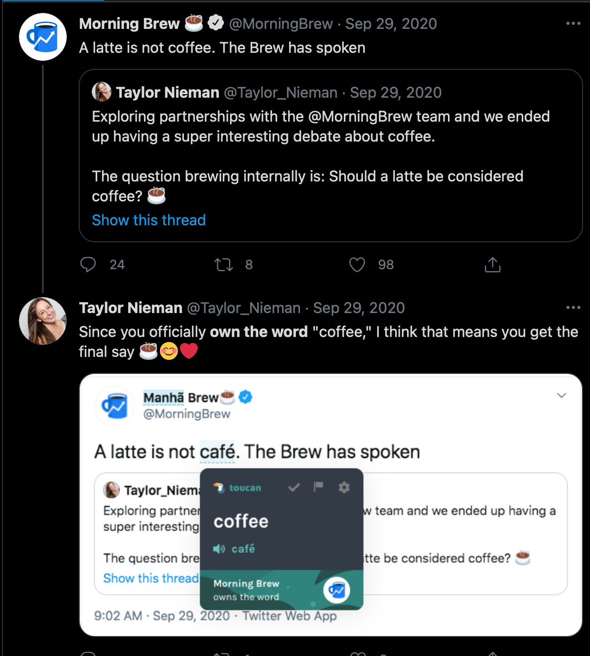 People on average spend 5-7 hours everyday browsing the web, on the other hand, language learning platforms strive to get you to spend just 20min-30min on their app 4-5 days a week. By (literally) being where consumers are, Toucan did not only avoid directly competing with the behemoths in this space, but more interestingly, got users to spend X8-X25 more time learning a new language. The more time you spend searching the web, the more value you extract from Toucan, the more trust and social capital the company builds.